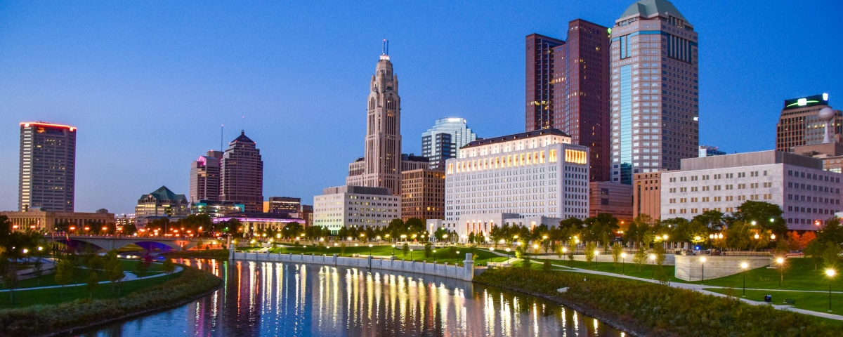 Downtown Columbus, Ohio during beautiful summer sunset. Columbus is the capital of Ohio and largest city of Franklin County. Note: all logos have been blurred in the logo per iStock guidelines for royalty-free submission.