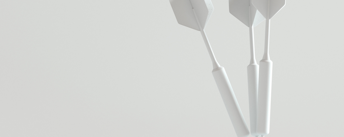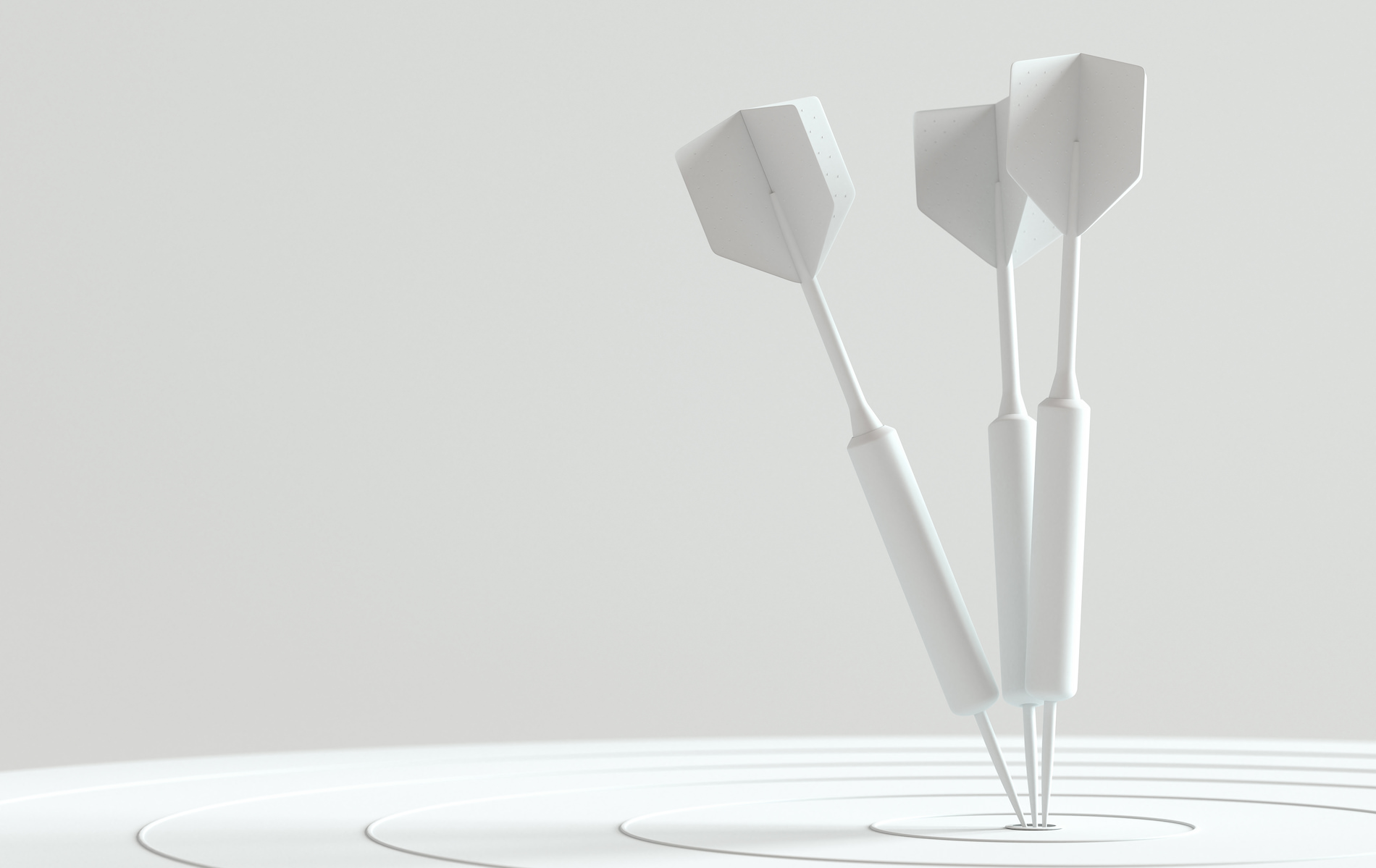 Darts hitting in the target center with copy space for your text, Minimal concept, 3d render.